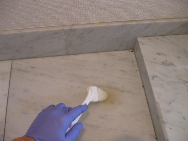 - 玄関大理石框(かまち)に付いた油シミ抜き