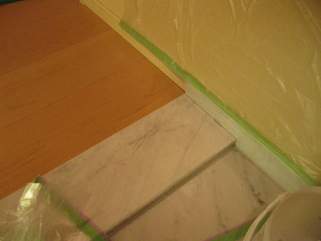 - 玄関の白大理石の土間に付着した靴の染料落とし