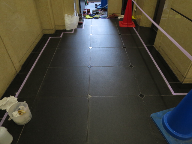 - マンションエントランス ゴミ袋から出る油シミ処理とウェットコート
