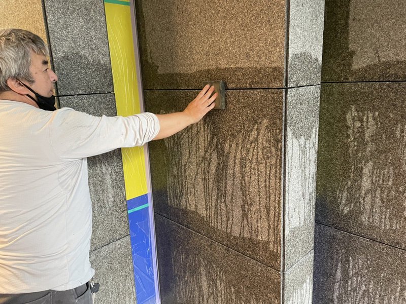 - マンションエントランスに付いた、床石(御影石)の油シミ除去