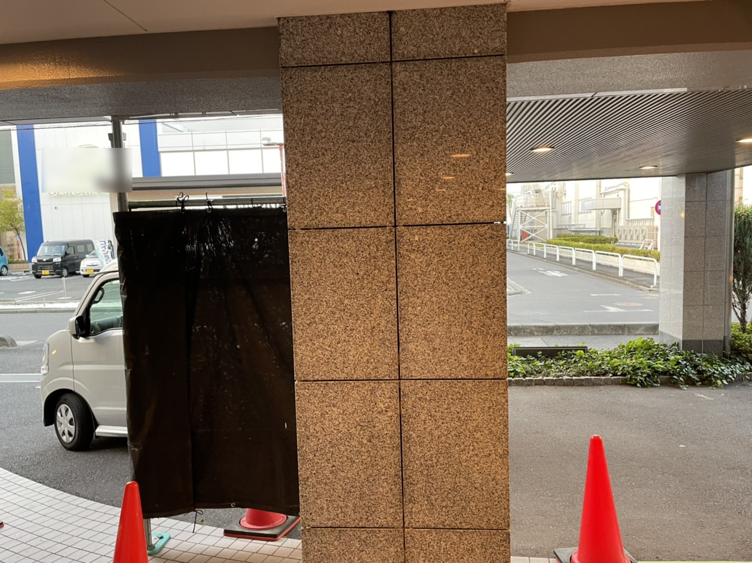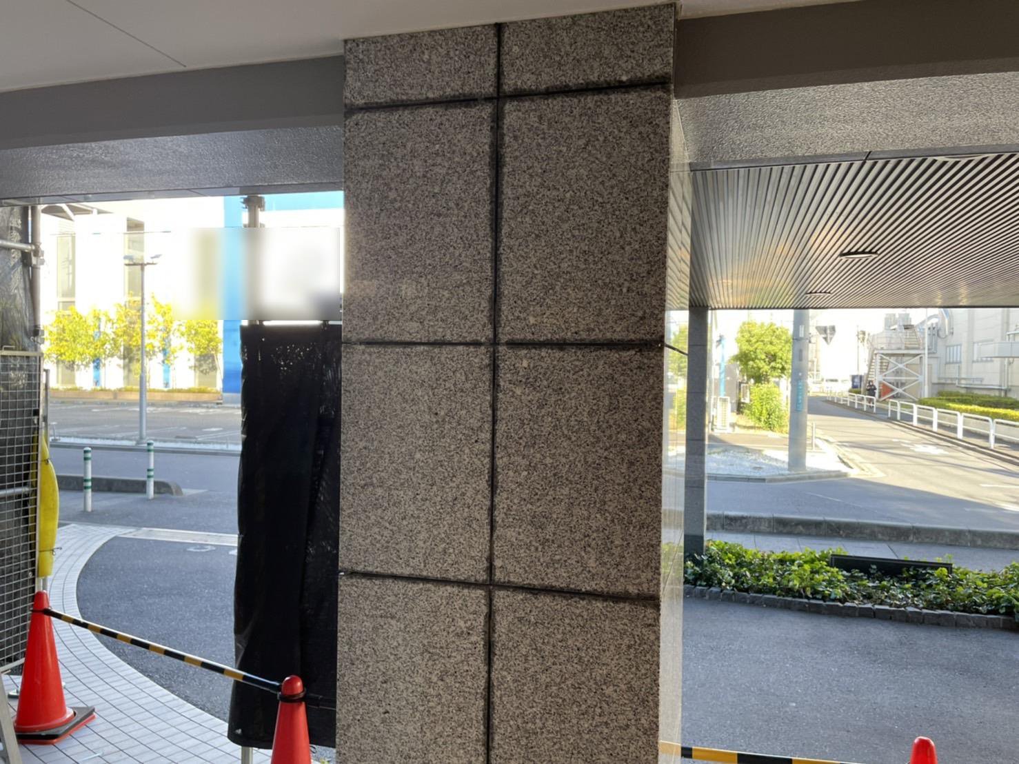 - マンションの御影石本磨きの外壁にペンキのスプレーによる落書きが