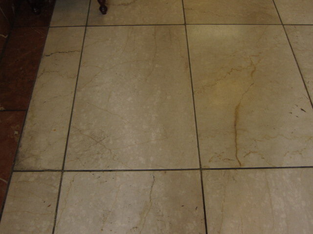 - 大理石床が漏水でエフロ(コンクリートのアク)が発生して