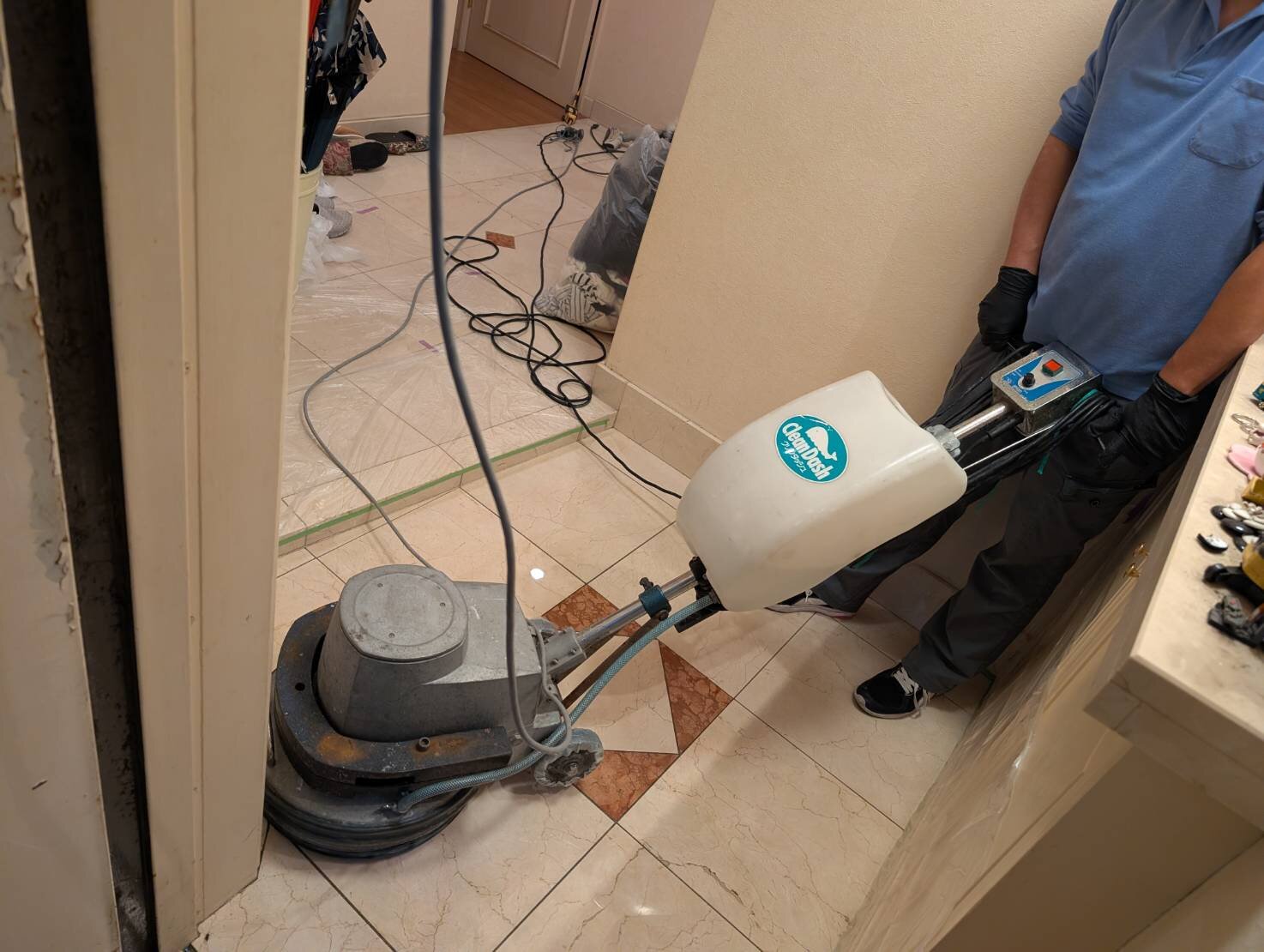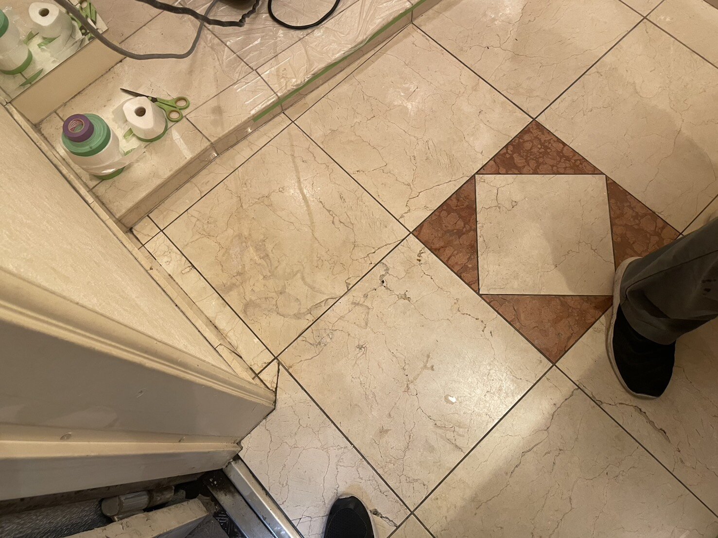 - 玄関大理石の土間のシミ抜きとダイヤ研磨施工