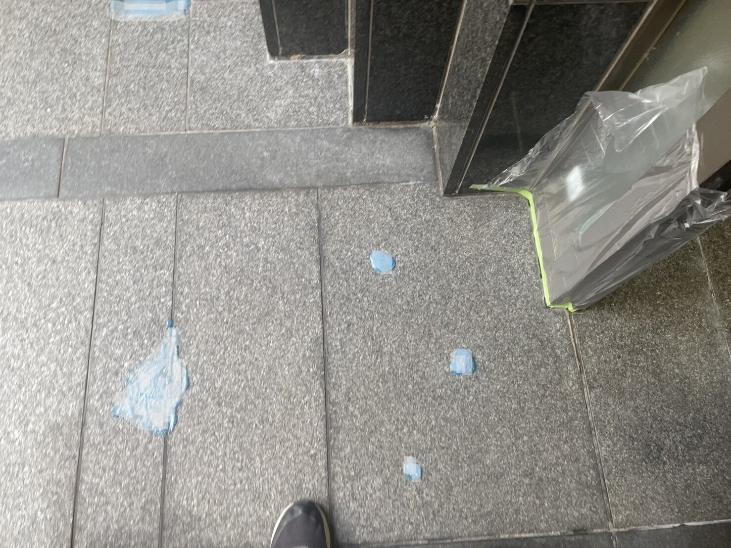 - マンションエントランス床石に付いたシミ