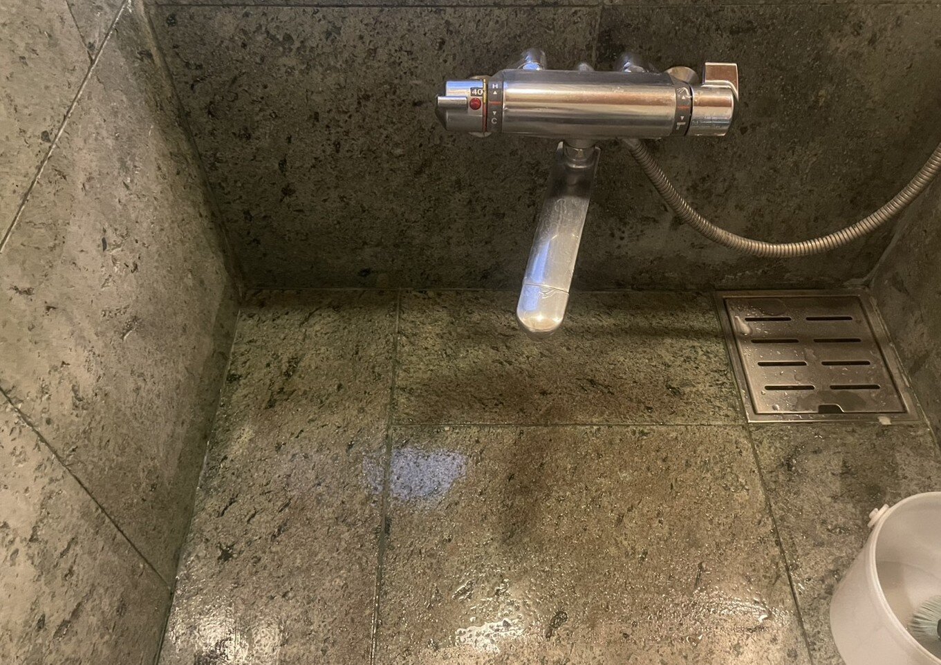 - 石の浴室は水垢等の汚れがきついのでテストが必要!