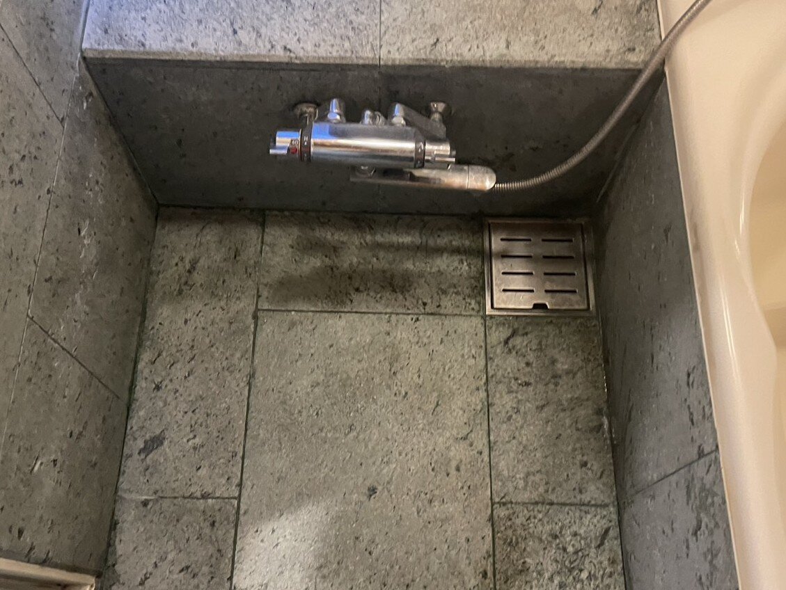 - 十和田石浴室の洗い場床が、4つの汚れで目立ってしまい