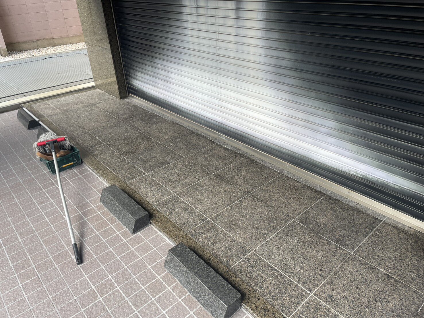 - ビルの外構の御影石バーナー仕上げ床の汚れが目立つ!