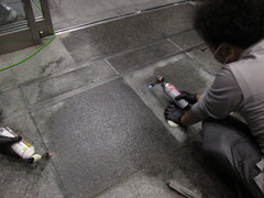 - マンションエントランスに付いた、床石(御影石)の油シミ除去