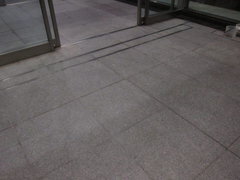 - 店舗入り口前の黒御影石バーナー仕上げの床に濡れジミが